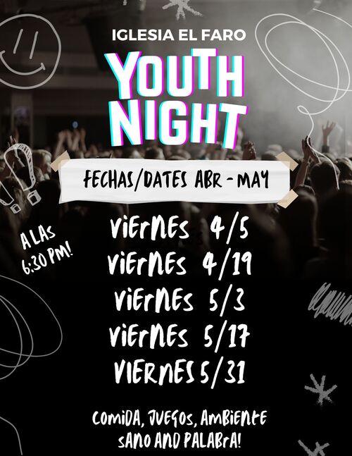 Nuestra intención es crear un ambiente que ayude a los estudiantes de middle school y high school a vivir su fe. Los adolescentes que son dueños de su fe tienen una relación íntima con Dios, un amor profundo por los demás y un corazón de servicio por el mundo que los rodea. Esto sucede cuando los Youth ven a Dios orbrando en sus vidas y alrededor de ellos, y deciden unirse a Él en Su obra.